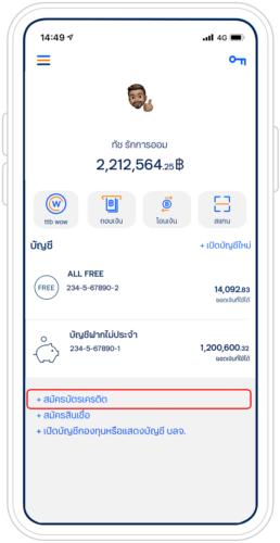2.เลือก "สมัครบัตรเครดิต" บริเวณด้านล่างของหน้าสรุปบัญชี