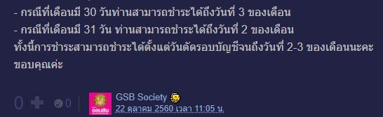 • กรณีของเดือนที่มีจำนวน 30 วัน สามารถทำการชำระค่าบริการบัตรเครดิตธนาคารออมสินได้ถึงวันที่ 3 ของเดือน