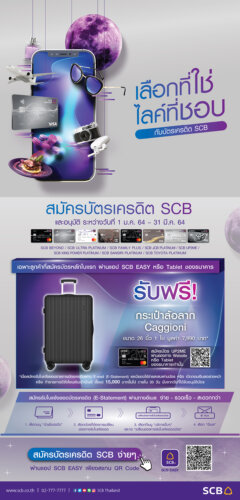 - 17 สมัครบัตรเครดิตไทยพาณิชย์แฟมิลี่พลัส (SCB Family Plus) รับฟรีกระเป๋าล้อลาก Caggioni ขนาด 26 นิ้ว 1 ใบ