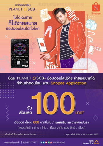 บัตร SCB Planet สามารถช้อปปิ้งออนไลน์ได้อย่างง่ายดาย สามารถจ่ายเป็นเงินบาทได้ที่ร้านค้าออนไลน์ผ่าน Shopee Application และเมื่อทำการช้อปปิ้ง 600 บาทขึ้นไป /รับส่วนลด 100 บาท (*สงวนสิทธิ์ 1 ท่าน /โค้ด/เดือน จำกัดสิทธิ์ 500 สิทธิ์ ต่อเดือน)