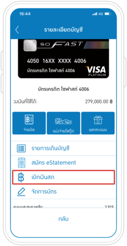 • เลือก "ถอนเงินจากบัตรเครดิต"
