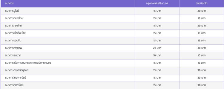 ค่าธรรมเนียมการเบิกเงินสดที่ไปรษณีย์ไทย  20 บาท
