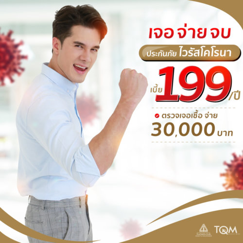 ประกันโควิดสินทรัพย์แผนเจอ จ่าย จบ ด้วยเบี้ยประกันเพียง 199 บาทต่อปี แต่คุ้มค่าด้วยการจ่ายสูงสุดถึง 30,000 บาทเมื่อตรวจพบเชื้อไวรัสโคโรน่าและพ่วงมาด้วยการจ่าย 5,000 บาทเมื่อท่านผู้เอาประกันเสียชีวิตจากอุบัติเหตุ คุ้มครองเป็นเวลา 1 ปี