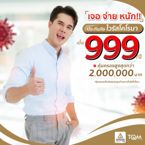 ประกันโควิดสินทรัพย์แผนเจอ จ่าย หนัก ด้วยเบี้ยประกันเพียง 999 บาทต่อปี แต่คุ้มค่าด้วยการจ่ายสูงสุดถึง 2,000,000 บาทเมื่อตรวจพบเชื้อไวรัสโคโรน่าและพ่วงมาด้วยการจ่าย 100,000 บาทเมื่อท่านผู้เอาประกันเสียชีวิตจากอุบัติเหตุ คุ้มครองเป็นเวลา 1 ปี มอบค่ารักษาพยาบาล กรณีเจ็บป่วยจากการติดเชื้อไวรัส COVID-19 100,000 บาท