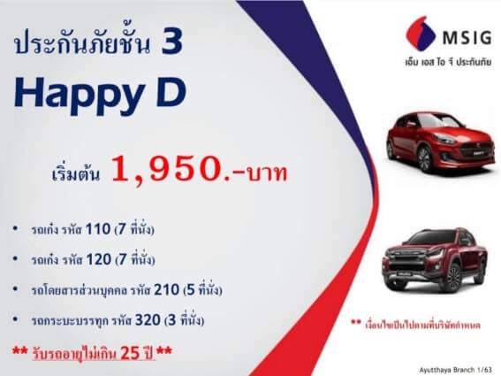 4.ประกันรถยนต์ MSIG: MSIG Happy D