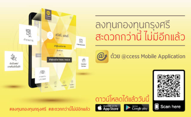สำหรับคนที่ต้องการจัดการกับกองทุนธนาคารกรุงศรี อย่างสะดวกรวดเร็วมากขึ้นกว่าเดิม ก็สามารถทำได้อย่างง่ายดายผ่าน Krungsri @ccess Mobile Application ที่บอกเลยว่าคนที่ลงทุนกับกองทุนของธนาคารกรุงศรีไม่ควรพลาด